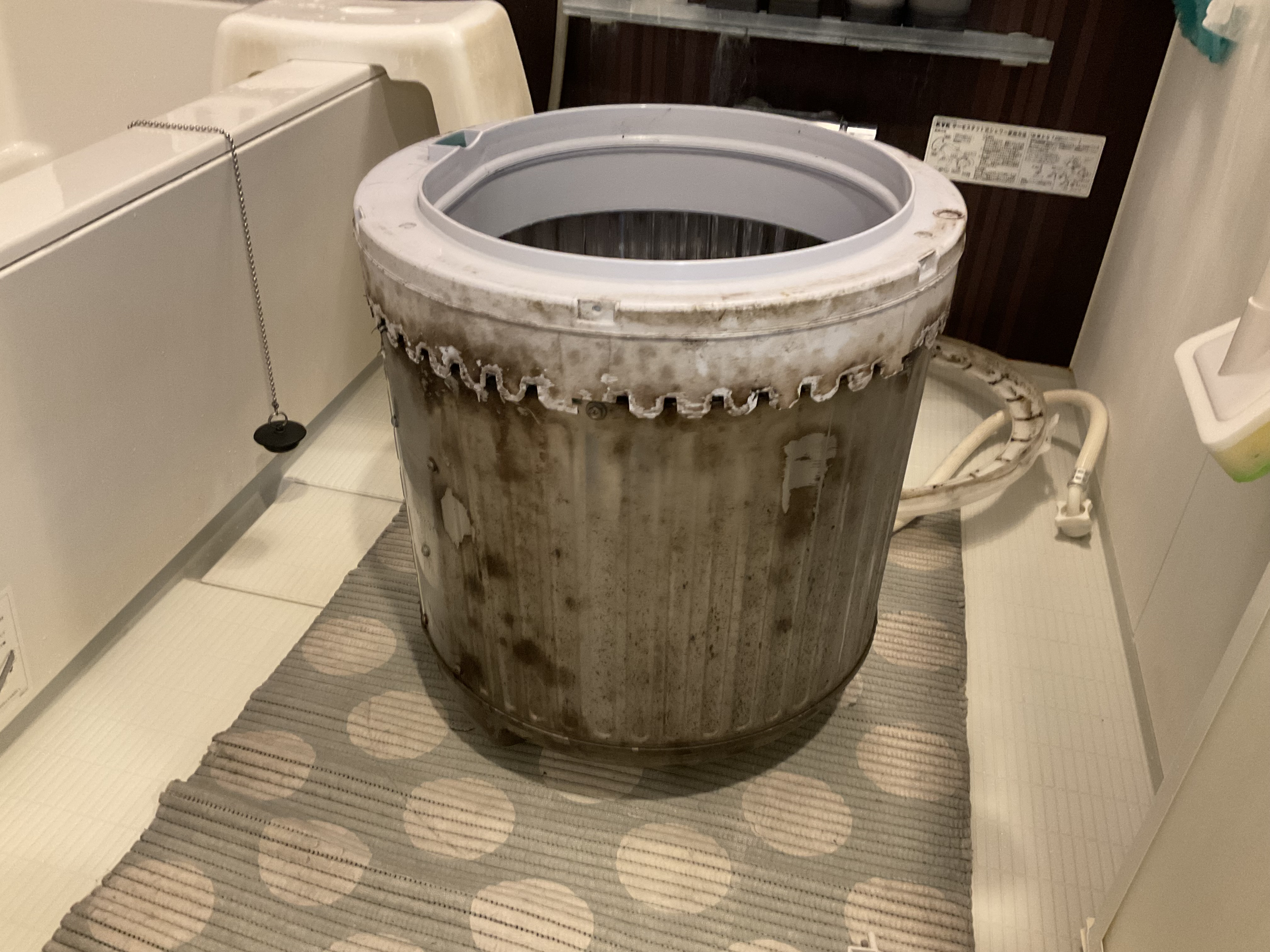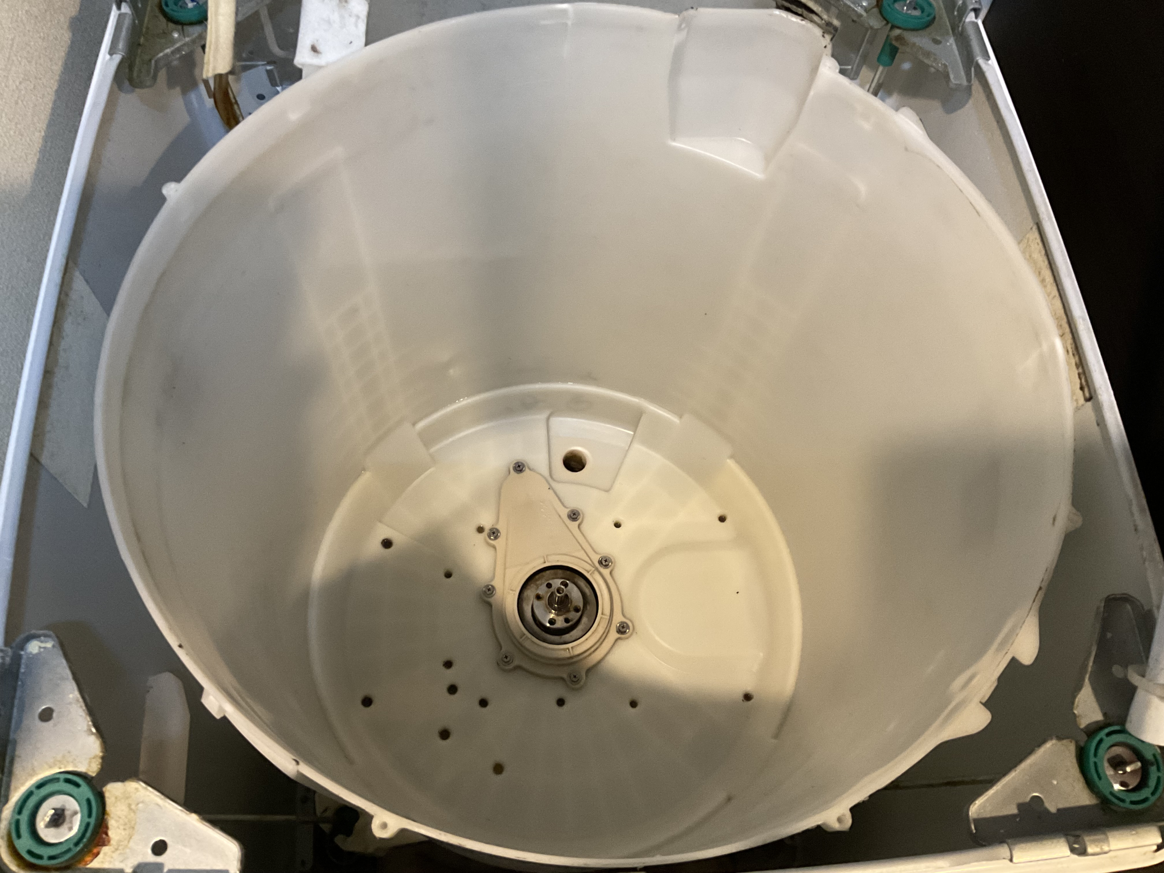 洗濯槽内部にハードに石鹸カス等の汚れが付着していましたがクリーニングでスッキリキレイ✨になり